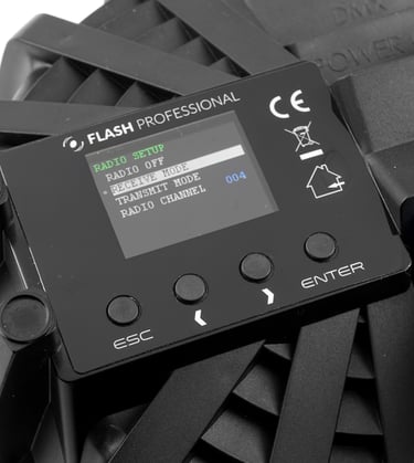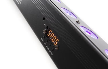 - Darbojas automātiski pēc manuālas programmu iestatīšanas vai ar DMX vadību.