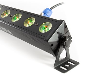 - Uzstādīt var uz grīdas, izgaismojot sienas un griestus vai arī uz skatuves konstrukcijām.